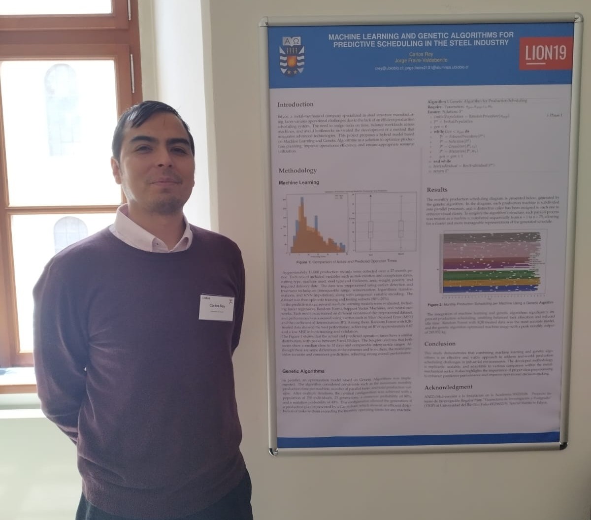 Entre el 15 y el 27 de junio, el académico Carlos Rey participó en la 17ª edición de la Conferencia Internacional sobre Aprendizaje y Optimización Inteligente (LION, por sus siglas en inglés), realizada en Praga, República Checa. Su asistencia se enmarca en el cierre del proyecto Subvención a la Academia, y contempló además una pasantía de investigación en Alemania. LION es un evento interdisciplinario que reúne a especialistas en optimización, aprendizaje automático e inteligencia artificial, promoviendo el desarrollo de soluciones innovadoras para problemas complejos en ámbitos como la energía, la salud, la industria y el transporte.