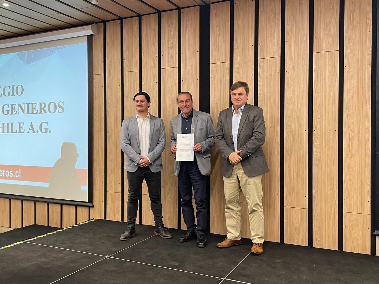 La distinción fue entregada durante la Ceremonia de Premiación del Concurso Innovando con Ingeniería 2025, realizada en la Sede Santiago del Colegio de Ingenieros, y fue recibida por el Director de la Escuela, Iván Santelices Malfanti.